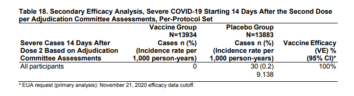 Lo studio di fase 3, ovvero uno studio randomizzato controllato su circa 30.000 partecipanti ha dimostrato un’efficacia del vaccino (VE) del 94,5% (IC 95%: 86,5%, 97,8%).