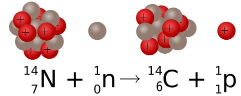 Sulla terra il carbonio si trova quasi al 99% come isotopo C-12 e circa per l’1% come C-13. Ma esistono piccole tracce anche di isotopo C-14, che si formano nell’alta atmosfera. Infatti alcuni neutroni dei raggi cosmici sono catturati dai nuclei di azoto, e in seguito all’ espulsione di un protone si forma il carbonio-14.