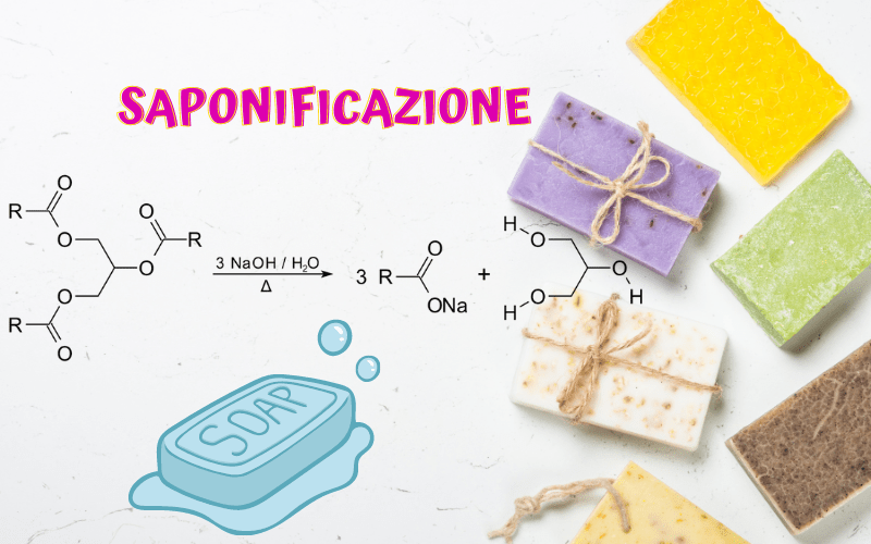 Le reazioni tipiche dei gliceridi sono l’idrogenazione degli oli e l’idrolisi alcalina di grassi e oli. La reazione di idrolisi che porta alla formazione dei saponi è detta idrolisi alcalina o chiamata anche saponificazione. La saponificazione è una reazione di idrolisi del legame estere tra glicerina e acidi grassi ad opera di una base forte (NaOH, KOH), cheli trasforma in sali sodici (solidi) o potassici (liquidi), detti più comunemente saponi.