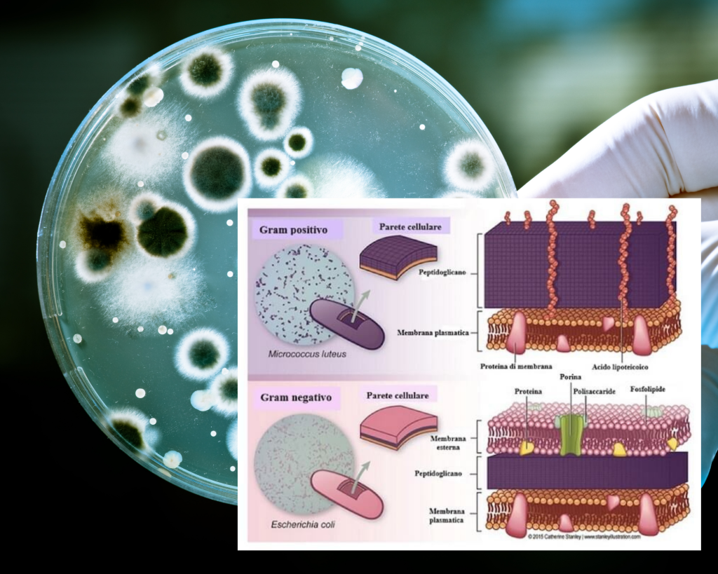 essi sono identificabili in due grandi classi: batteri Gram positivi e batteri Gram negativi.