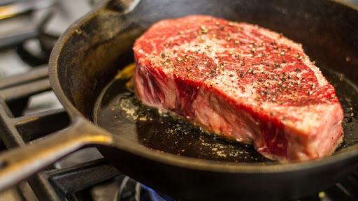 Una padella ben calda, in metallo, spessa e pesante, che sappia distribuire bene il calore e mantenerlo, farà vaporizzare tutti i succhi che fuoriescono dalla carne, confinando l’acqua nella parte più interna della carne. Quindi un perfetto filetto o bistecca deve rimanere morbida e rosa all’interno, in quanto tutti i succhi e liquidi si sono perfettamente distribuiti.