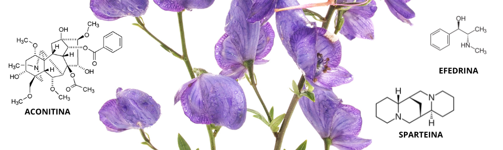 Un’altra di queste è la Aconitum napellus o aconito, una pianta che cresce in zone montuose e nota, per le sue proprietà tossiche, già a i tempi dei Galli e dei Germani. Le sue parti, incluse le radici, contengono miscele complesse di alcaloidi quali: aconitina, napellina, pseudoaconitina, aconina, sparteina, efedrina e tutte queste sostanze hanno attività neuro- e cardio-tossica. Bastano pochi milligrammi per mettere KO una persona.