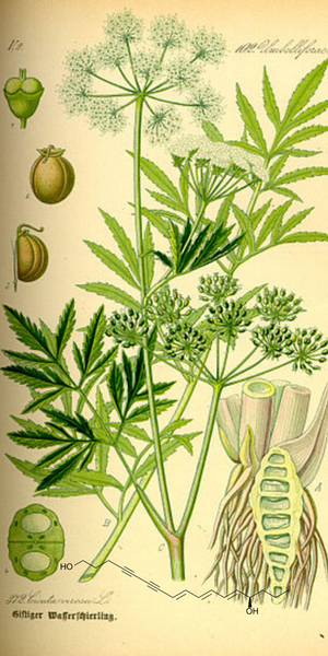 La radice è mortalmente velenosa! La tossicità è causata dai poliini , in particolare dalla sostanza cicutossina .