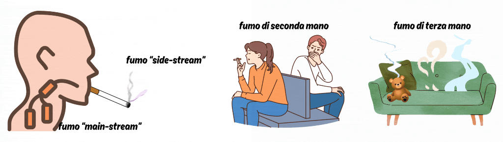 Nel dettaglio il fumo sidestream, determinato dalla combustione incompleta del tabacco e di alcune delle sostanze in esso contenute, contiene una maggior quantità di carcinogeni ed è inoltre in grado di reagire con componenti dell’aria in cui diffonde, incrementando la propria tossicità.