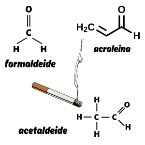 Sostanze organiche da annoverare come tossiche e cancerogene sono anche la formaldeide, l’acetaldeide e l’acroleina. La formaldeide è un conservante utilizzato nel processo di trattamento del tabacco e si forma anche durante la combustione, contribuendo ai rischi per la salute. E’ un altro cancerogeno noto e può danneggiare il DNA aumentando il rischio di sviluppare cancro del tratto respiratorio e altri tipi di cancro.
