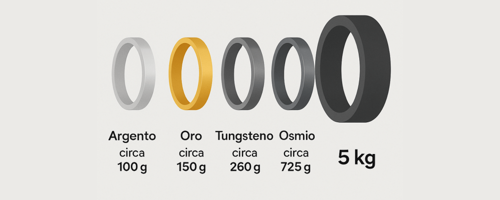 Quindi adesso sappiamo il volume che occupa un bracciale dalle dimensioni standard, ma la domanda che ci poniamo è quanto peserà un bracciale di osmio con questo volume?